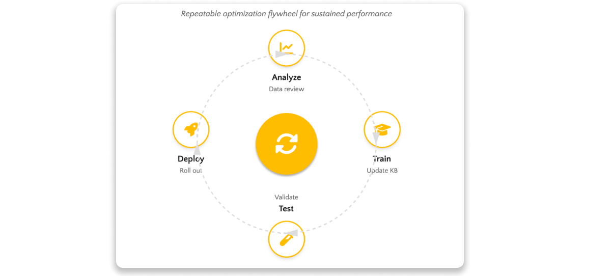 In practice, that means your AI agent is continuously improved through a structured loop of analyze, train, test, and deploy. The underlying context is set up correctly from the start and kept up to date, and tailored to your brand and tone, so the AI can generate accurate, consistent, on-brand responses.